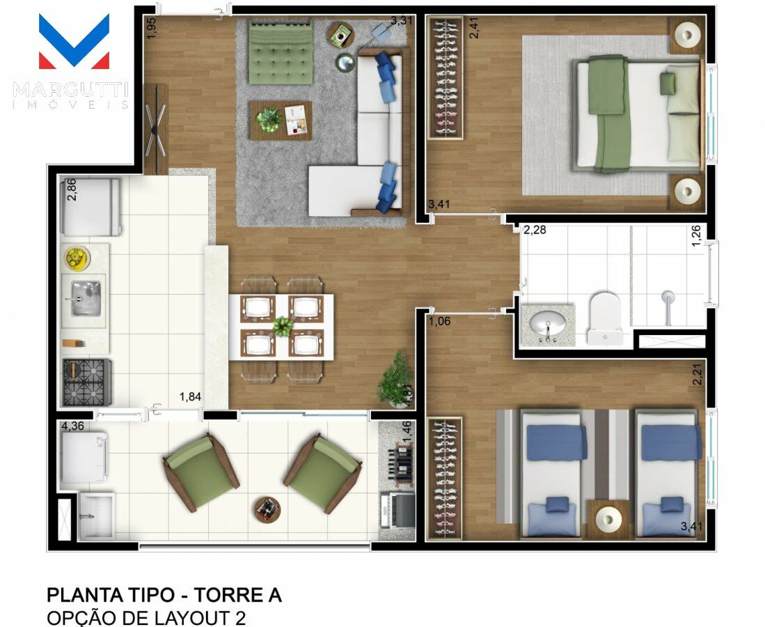 2 Dormitórios1 Banheiro1 Vaga1 Sala de TV1 Cozinha1 Sala de jantar1 Sala de estar1 Área de serviço